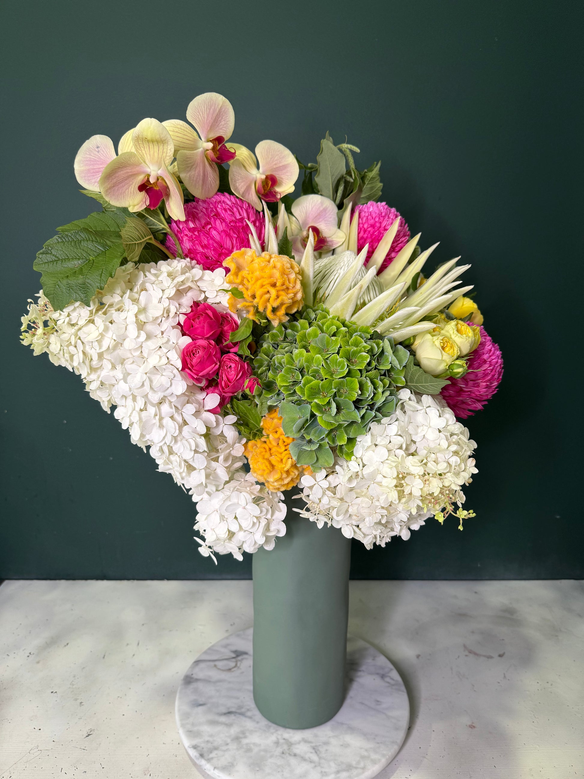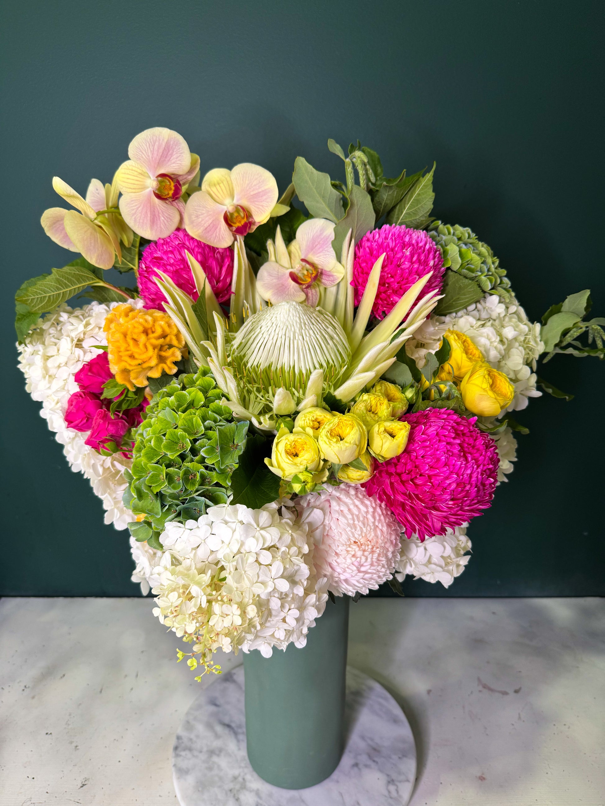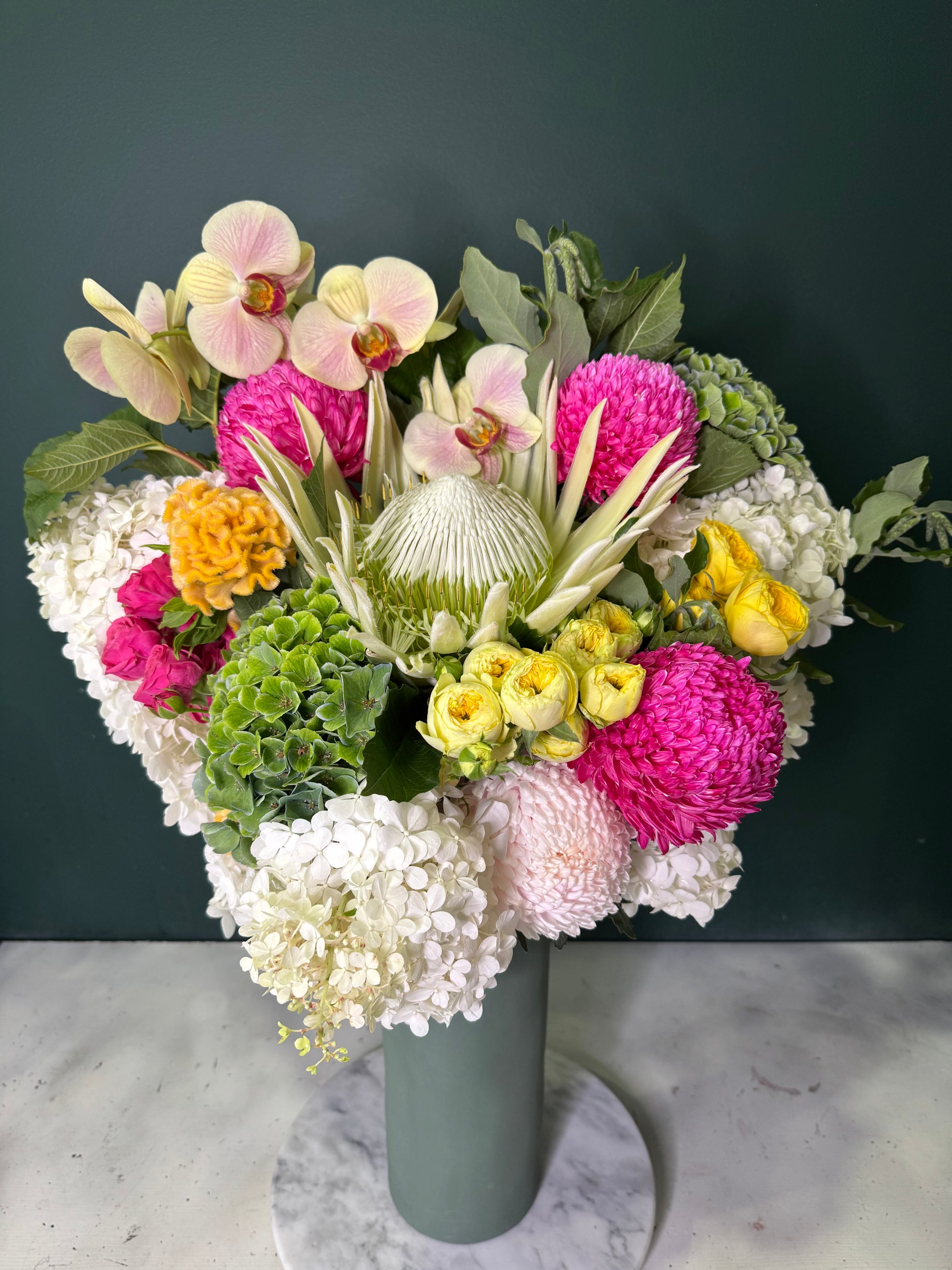 Maison MAI experienced florists professionally arrange the flowers into a beautiful bouquet.