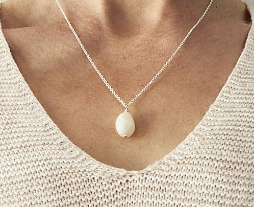 A delicate freshwater pearl necklace, perfect for the minimalist woman. Encompassing sophistication with a single baroque pearl (11-13mm) on a fine sterling silver cable chain with a spring ring clasp, sitting at princess length on the breastbone (45cm).