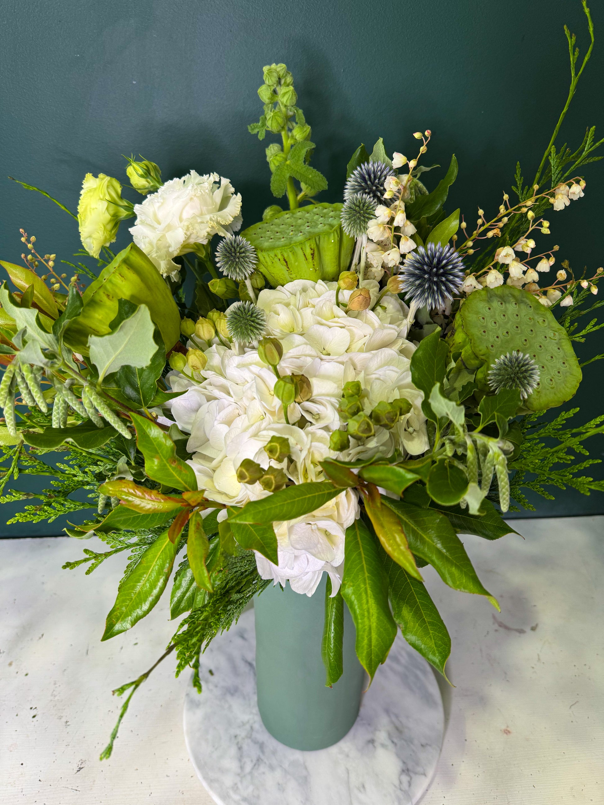 Because flowers and foliage stock are seasonal and subject to availability, flower arrangements may include similar substitutions of the same value and vary from what is depicted in the product photo