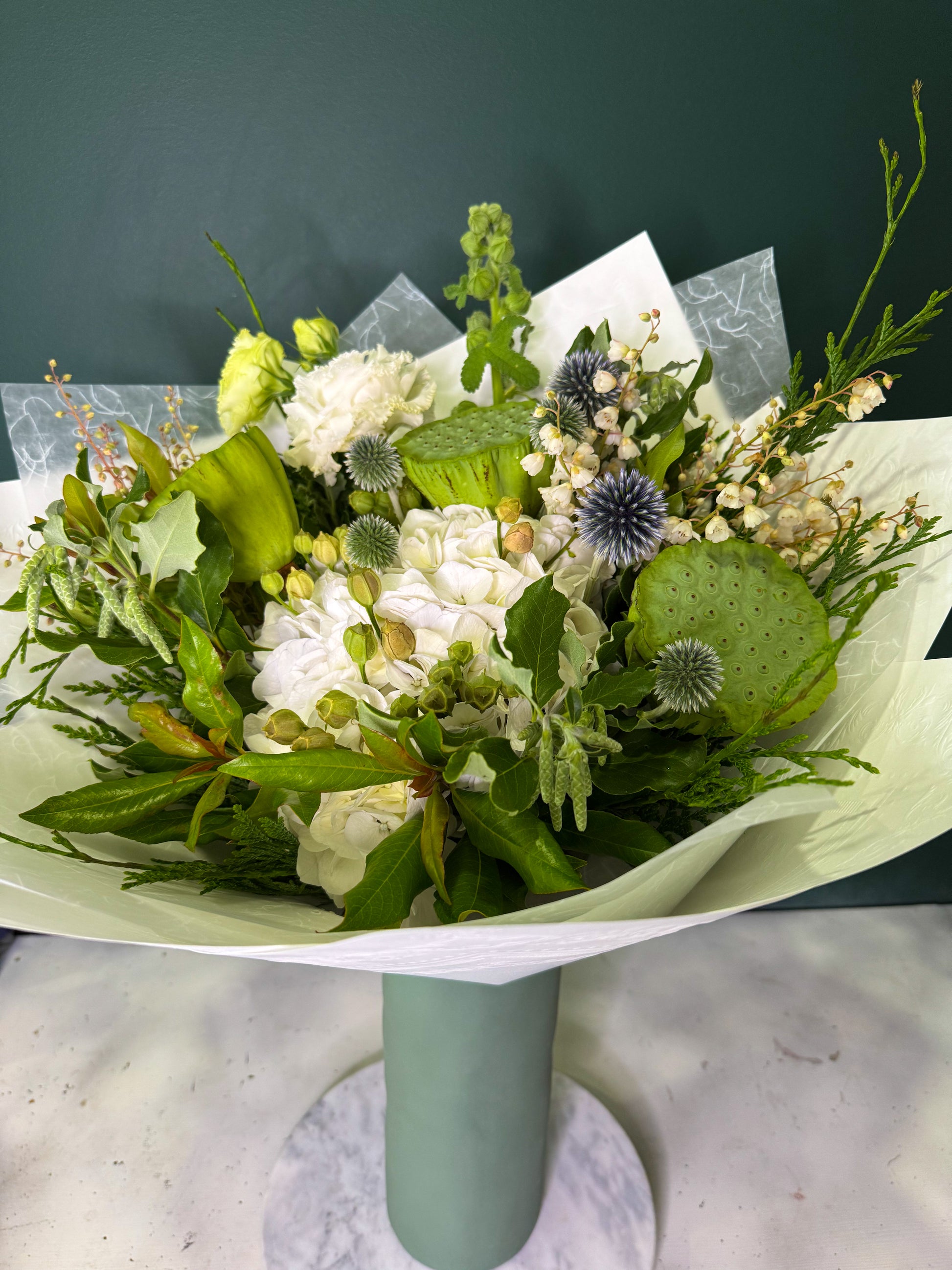 Maison MAI experienced florists professionally arrange the flowers into a beautiful bouquet.