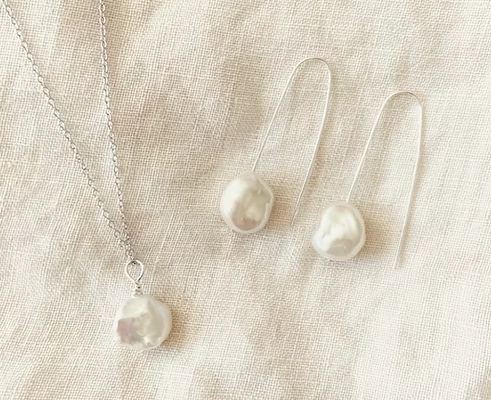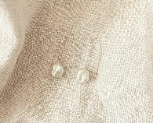Single pearl drop earrings made with sterling silver and freshwater Keshi pearls, natural (white) in colour. Freshwater pearls are natural and have a raw organic finish, their shape is unique and imperfections are common. Keshi pearls in particular are individual in their form. The pearls in the picture are an example - your pearls will be exclusive to all others.