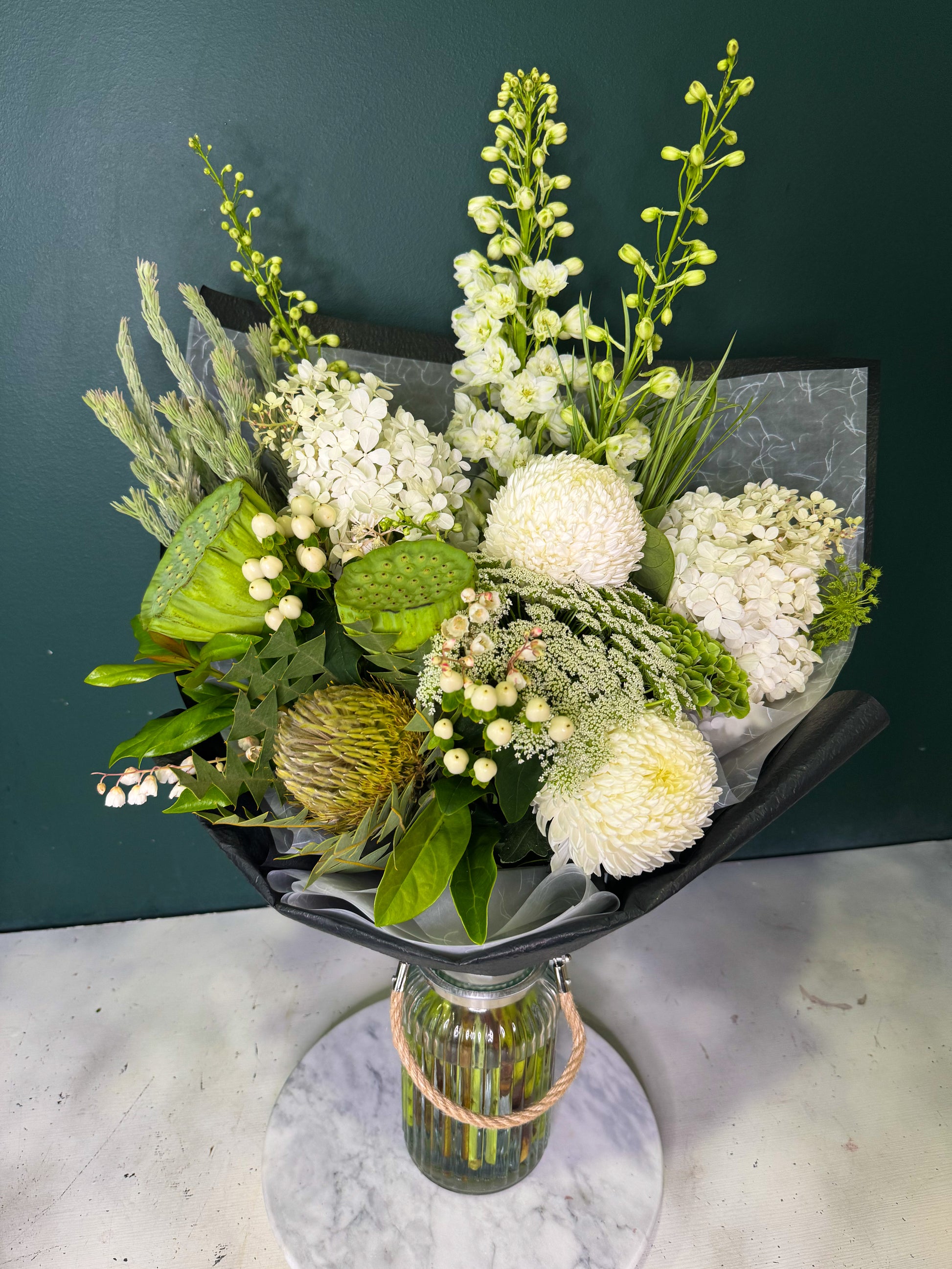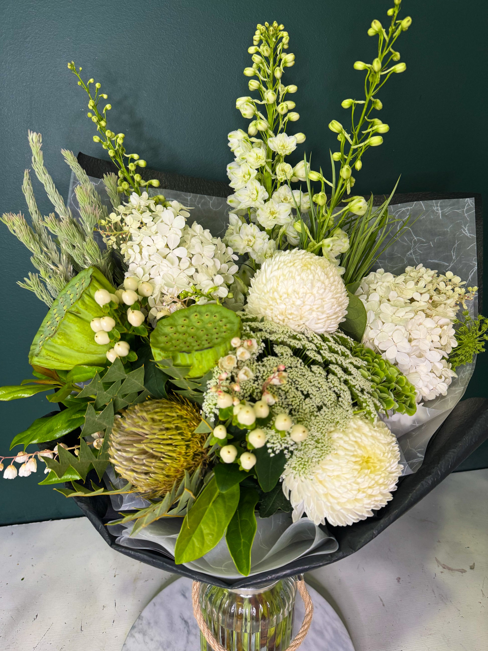Maison MAI experienced florists professionally arrange the flowers into a beautiful bouquet.