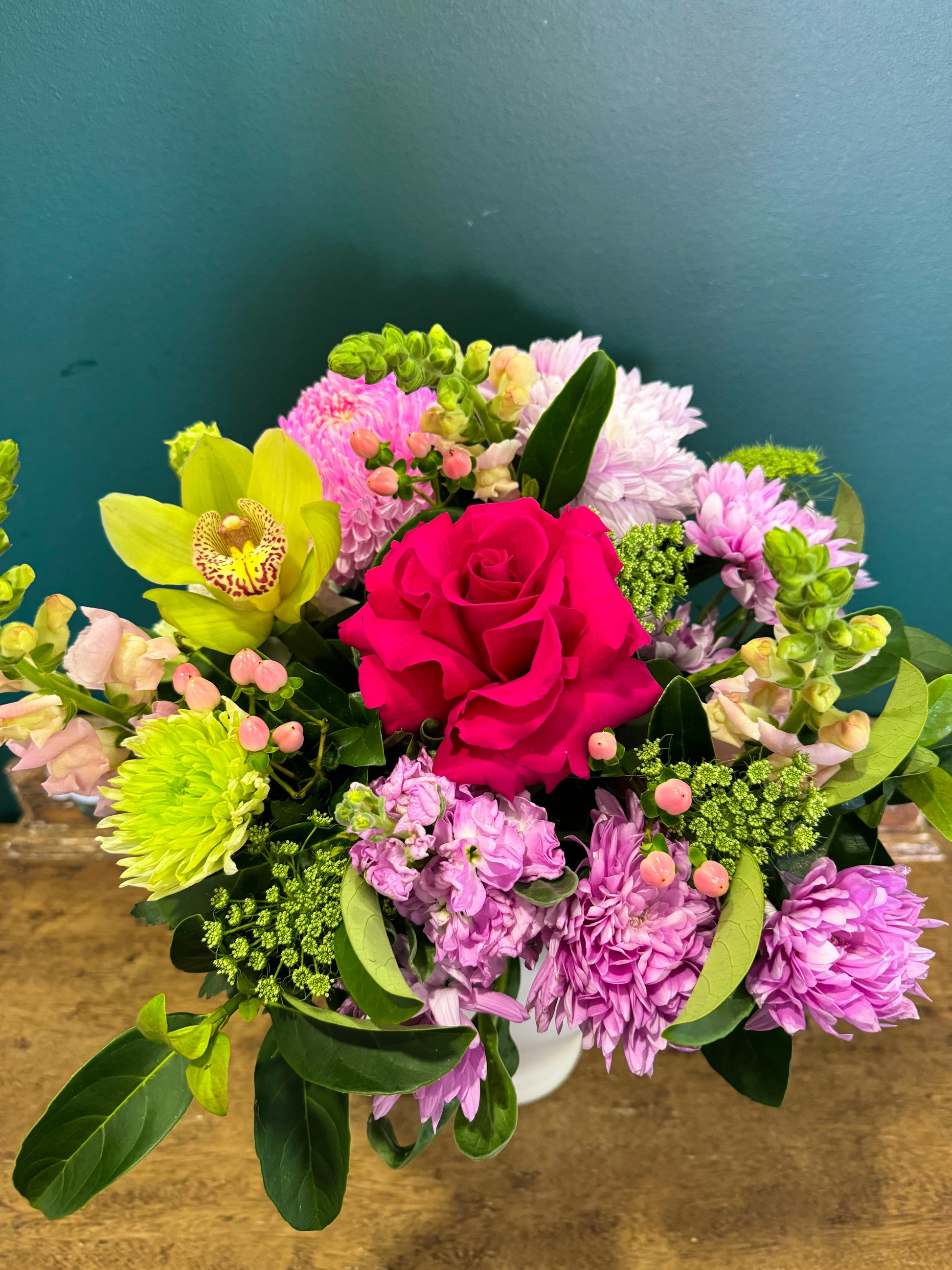 Because flowers and foliage stock are seasonal and subject to availability, flower arrangements may include similar substitutions of the same value and vary from what is depicted in the product photo